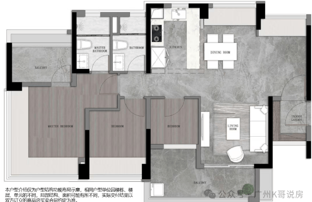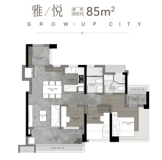 86㎡三房两卫:适合三口之家,南向四开间,跑道式阳台,阳光衣帽间。