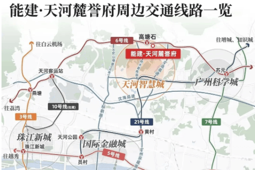 项目位于天河智慧城北部,广汕二路以南、大观北路以北,处于天河 “中央科创核”(CTD)核心区,与珠江新城、金融城并列天河经济双核。交通极为便捷,距地铁 6 号线高塘石站 B 出口约 850 米,30 分钟直达三大 CBD;未来 10 号线东延线规划接入,出行更高效。自驾方面,北侧紧邻广汕二路,500 米可达广连高速,轻松接驳广佛肇高速与广州环城高速。