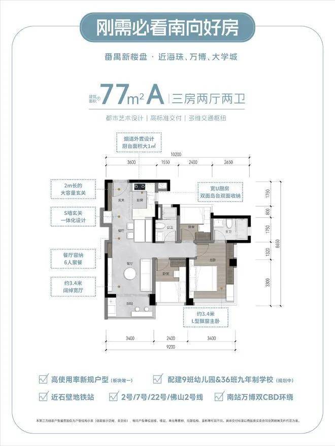 地铁:2号线、7号线广州南站约1.5公里(小区配楼吧接驳),2025年开通的22号线后通段5站直达白鹅潭CBD;