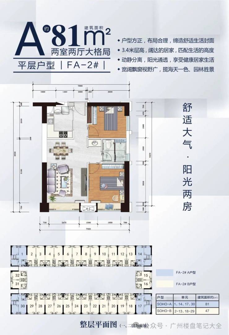 SOHO面积:35(一房)、47(一房)、81(两房)
