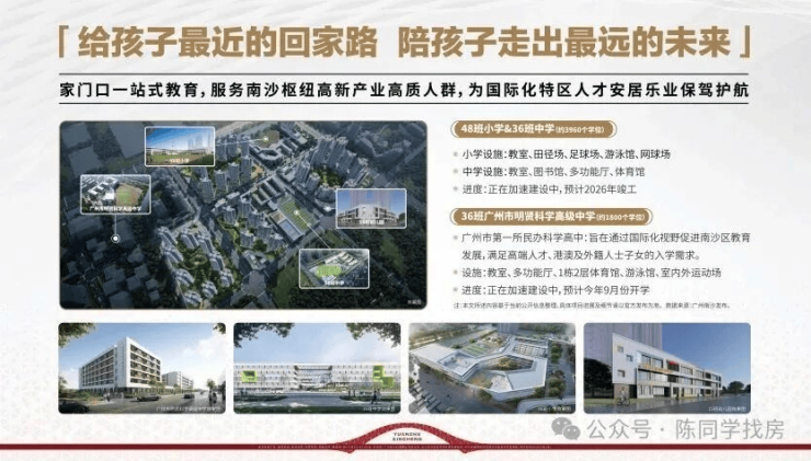 教育资源:项目配建12班幼儿园,对口广州外国语学校附属南沙学校(省一级,直线距离约800米)。