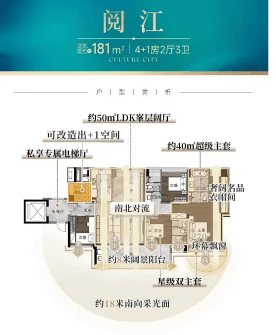 建面约181㎡大平层:作为“终极改善”范本,该户型拥有约18米南向IMAX湖景视野,全屋南北对流设计让穿堂风自由流通。近16㎡的南向全景阳台搭配约8米巨幕观景面,可打造专属品茗区或休闲区,享受湖风拂面的惬意生活。专属独立电梯厅搭配约4㎡入户鞋帽间,形成“内外双玄关”设计,彰显尊崇质感。