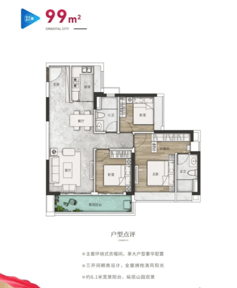 78-89㎡三房:刚需首选,得房率 80%,户型方正,动静分区清晰,部分户型带入户花园或宽景阳台,客厅与阳台连通,采光通风佳,适合年轻三口之家,低首付即可上车;