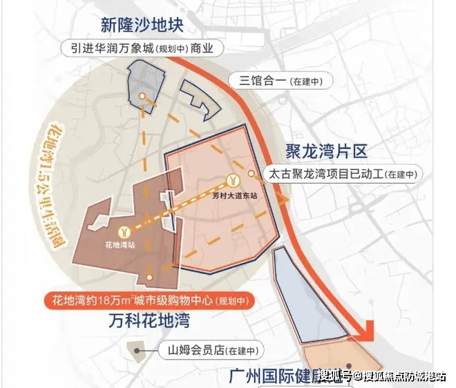 项目自带约5000㎡社区商业,步行5分钟可达已开业的“花地湾商业街”(引进永旺超市、星巴克等);1公里外是规划中的“万象城”(2026年底开业,体量约15万㎡),将引入奢侈品、高端餐饮等业态。对比同价位板块: