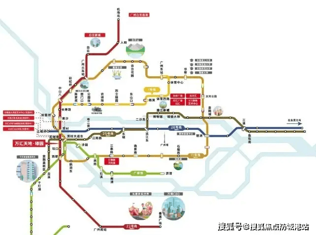 万科理想花地瑧园距花地湾地铁站直线距离仅300米,1号线(已通车)、22号线(2025年底通车)、28号线(规划中)三轨交汇,可直达珠江新城、琶洲、白云机场等核心区。实测数据显示:从项目到体育西路站车程仅25分钟(非高峰期),比同价位番禺板块节省15-20分钟。