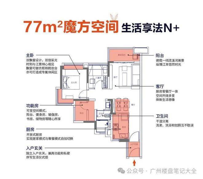 项目的户型设计兼顾实用与舒适,空间布局合理。77平米户型通过创意设计实现3房布局,独立入户玄关提供私密与功能兼具的空间;86平米户型客厅约3.9米大开间,宽景阳台连通中心园林,主卧转角大飘窗,儿童房结合床与飘窗设计,兼顾童趣与收纳;97平米四房户型更显阔绰,多功能空间可随需转换,主卧套房配双窗台增加衣物储存空间,让家庭生活更加便利和舒适。通风采光设计充分考虑居住体验,每个户型都保证了空间舒适度和视觉宽敞感。