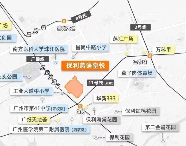 项目位于广州城市中轴南延段,紧邻地铁广佛线与11号线(在建)燕岗站,直线距离仅约50米,是区域内罕见的“零距离”接驳地铁豪宅。相比广州外围板块,燕语堂悦拥有不可复制的“地铁上盖+老城烟火”稀缺资产,是真正的“离尘不离城”。