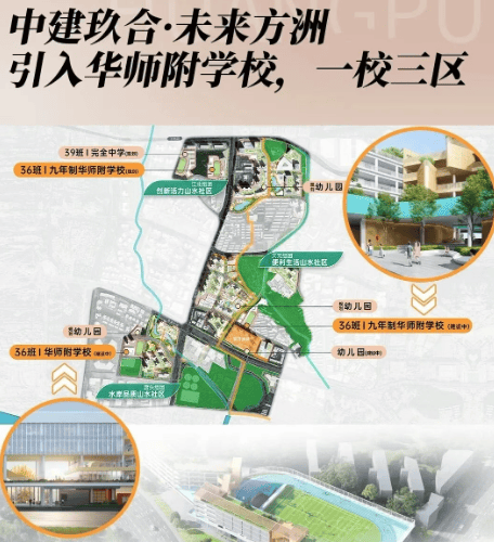 未来方洲整体规划了4所幼儿园、1所小学、2所九年制学校和1所完全中学(初中+高中),确保各年龄段的孩子都能享受到优质的教育资源。特别是文元组团内设有一所12班幼儿园和一所36班九年一贯制学校,并已确定引入华师附教育体系。华师附小升学率达到100%,重点中学录取率超过70%,为家长提供了安心保障。