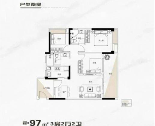 85-98㎡三房两卫:三开间朝南,双卫设计,二胎家庭福音,拓展性强;