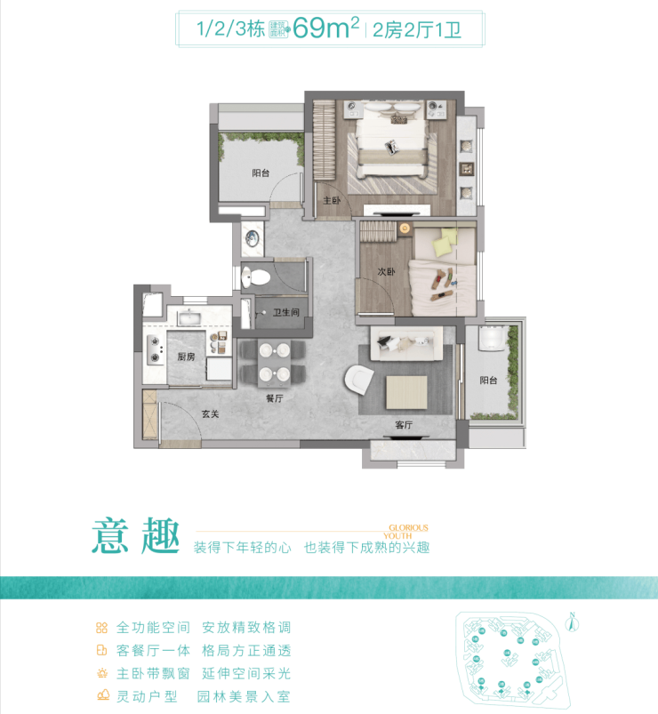 推售67-70㎡和80-85㎡三房、99-103㎡四房,提供给年轻一代拥抱多元化品质生活的理想选择!