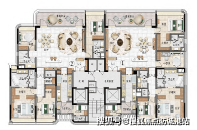 176-198㎡四房:双套房设计,270°观景阳台,适合多代同堂家庭;