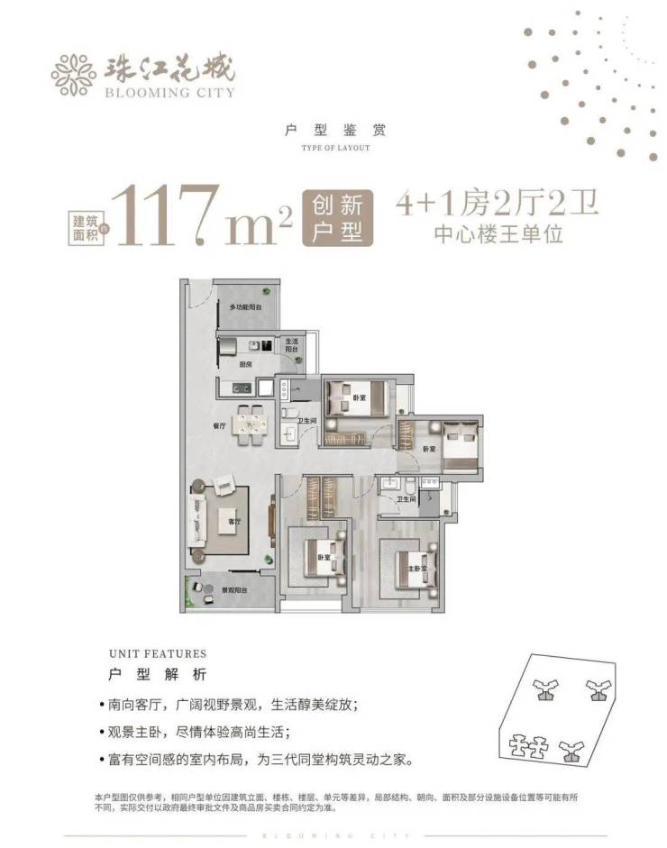 项目产品涵盖建面约70至140平方米的2+1至5房高使用率户型,实用率超87%,相比同面积段住宅多出一个房间,满足不同家庭结构需求。户型设计兼顾通风采光及景观视野,南北对流设计保证空气流通,全明布局提升居住舒适度。大面宽阳台及客厅设计,使室内空间更通透,同时为孩子活动区和家庭多功能区提供灵活空间。精致户型规划兼具美学与实用性,为改善型及刚需家庭提供高品质居住选择。珠实·珠江花城 售楼处24小时电话400-6557-087 (售楼部认证),预约专属顾问一对一服务,尊享内部折扣!