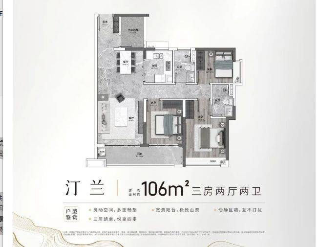 小户型亮点突出:91㎡户型实现四开间朝南,搭配 U 型厨房,既保证了充足的采光,又提升了厨房操作的便利性与空间利用率。106㎡户型无论是三房还是四房,均配备大阳台,进一步增强采光效果,同时拓展了实用空间。售楼处电话:4009909752 。