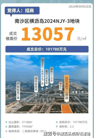 作为南沙首个 "超新规" 住宅试点,招商湾区 1872 从诞生之初就自带光环。2024 年 9 月 20 日,招商蛇口以 10.18 亿元底价拿下横沥岛 2024NJY-3 地块,扣除配建后成交楼面价约 1.3 万 /㎡,在寸土寸金的国际金融岛,这样的成本优势为项目的高性价比奠定了基础。地块北邻能建・金融城,南接铂玥明珠 ONE,东靠横沥 TOD 地块,处于横沥岛核心发展带,周边规划密集且兑现速度快,先天区位条件无可挑剔。