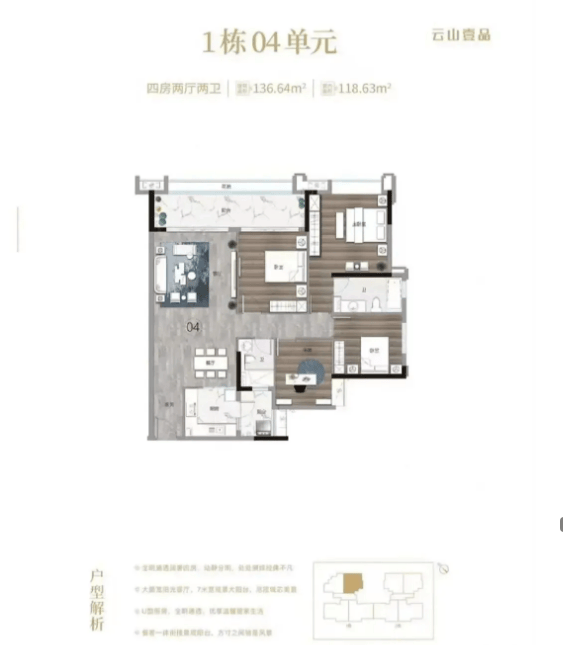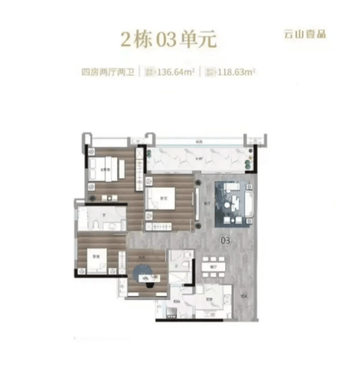云山壹品在售户型涵盖115㎡三房、136㎡四房、164㎡四房三种户型,均按照豪宅标准设计,注重空间舒适度与实用性,同时融入观景设计理念,让每一户都能尽享优质景观资源。