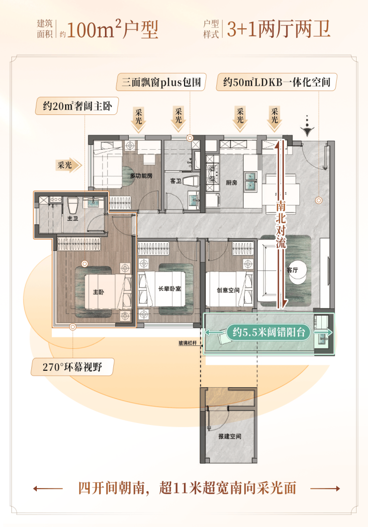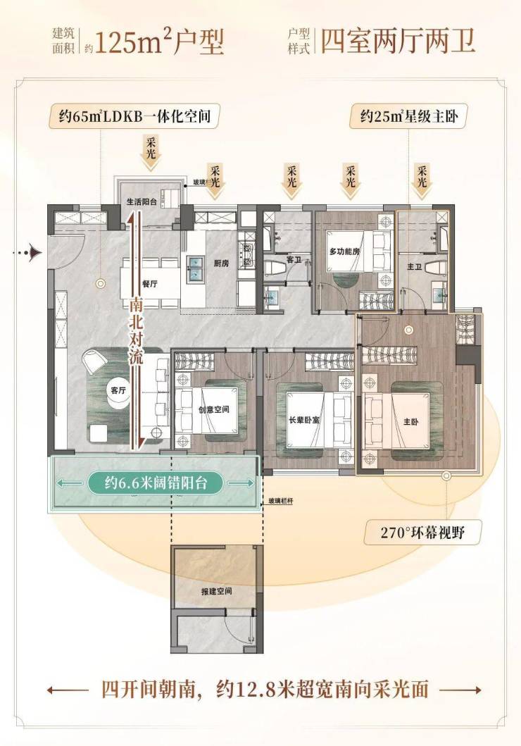建面约 125㎡创意板房,约 6.6 米客厅开间媲美大户型尺度,相连 X 空间可灵活隔断,实现功能自由切换,满足家庭不同阶段需求。南北对流双阳台,独立家政阳台让生活功能互不干扰。建面约 100㎡工艺板房,视觉体验宽敞,四房布局实用,全屋落地飘窗增加明亮度,U 型厨房搭配岛台、加深阳台等细节,提升生活场景丰富度。保利通过精准规划每一厘米空间,为生活需求优雅落地提供可能。