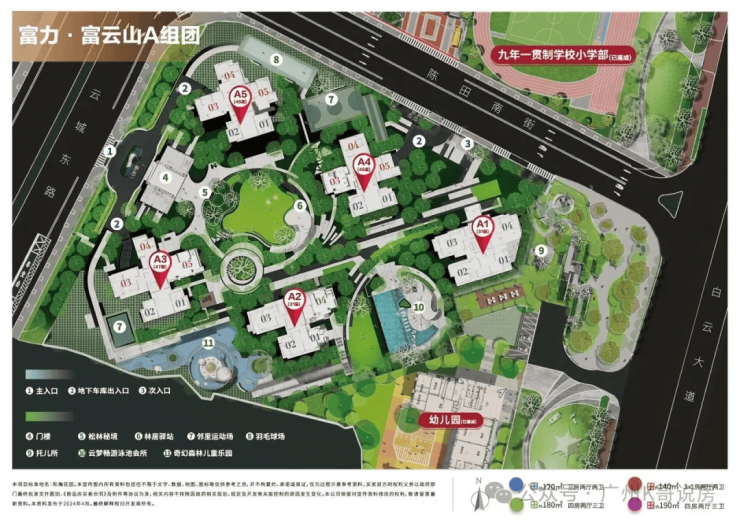 更重要的是,九年一贯制学校在白云区属于“凤毛麟角”般的存在。相比普通学校,九年一贯制学校能保证孩子升学的连贯性,避免了小升初的激烈竞争,让孩子在熟悉的环境中稳步成长。根据广州市政府的规划,白云站-白云新城片区将高标准规划并新增2处九年制学校、1处中学、6处小学、11处幼儿园,进一步完善教育配套布局。而富力富云山自建的7所学校,无疑将成为这一区域教育资源的核心组成部分,为业主子女提供优质的教育保障。