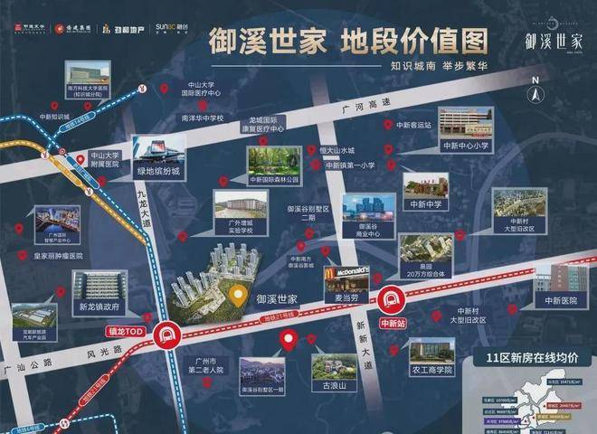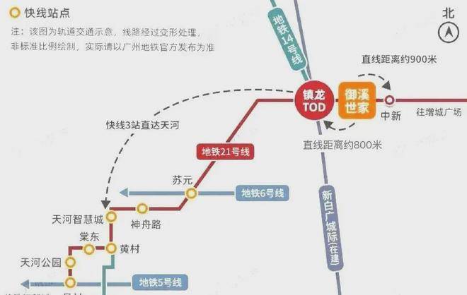 交通出行极为便捷,为居民的生活与出行提供了极大便利。项目坐拥双地铁优势,距离地铁 21 号线中新站约 1000 米,地铁 14/21 号线镇龙站也约 1000 米,搭乘快线 3 站就能直达天河,7 站抵达珠江新城,轻松融入广州繁华都市生活圈。对于在天河、珠江新城等地工作的居民来说,每天清晨可以从容地步行前往地铁站,快速到达工作地点,开启一天的工作;傍晚伴着夕阳余晖,又能便捷地回到温馨的家中。同时,还有业主楼巴车接驳到地铁口,为出行增添更多便利。此外,一大城轨 —— 穗莞深 - 新白广城际【镇龙站】,北至白云机场,南达深圳宝安机场,西连广州东站,通达佛山西站,让居民能够速达大湾区各核心城市,无论是商务出行还是休闲旅游,都变得轻松便捷。自驾方面,四纵路网(华快、京港澳、新新大道、珠三角环线)和六横路网(广河高速、广汕公路、花莞高速、增天高速、广园快速、济广高速)环绕,家门口就是广汕主干道,驾车 45 分钟可直达珠江新城,高效通勤,节省时间,让居民能够自由穿梭于城市之间,享受便捷的交通体验。
