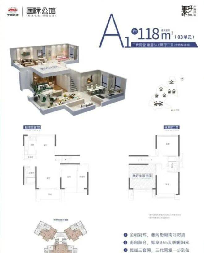 中国铁建国际公馆的复式产品在增城中新板块独树一帜。采用咬合式结构设计,这一创新设计不仅提升了空间利用率,使得房率高达 120%,相较于常规户型,同样面积可多出近 20㎡的使用空间,为业主提供了更为宽敞的居住体验。户型均为两梯四户,保证了居住的舒适度与私密性。纯南向设计更是一大亮点,确保室内拥有充足的采光和良好的通风条件,让阳光洒满每一个角落,清新空气时刻流通。这种设计完美契合三代同堂或多孩家庭的居住需求,各个家庭成员都能拥有相对独立且舒适的空间,无论是老人安享晚年,还是孩子快乐成长,都能得到充分满足。