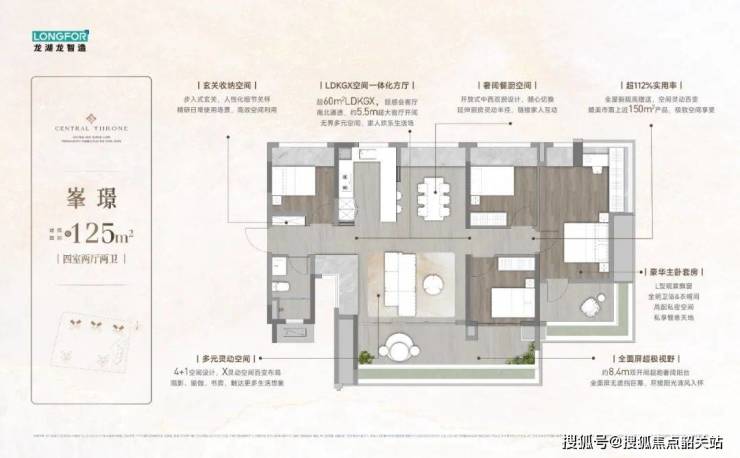 139㎡四房两厅三卫:双主卧套间设计,8.4米阳台可容纳6人聚餐,设备平台改造后收纳力提升3倍,总价550万元起。