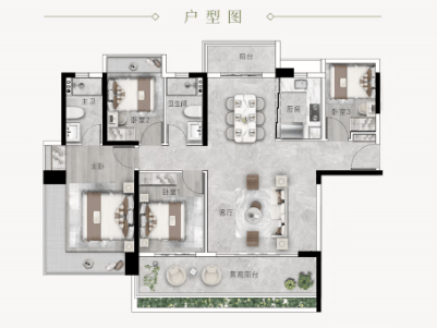 观璟组团首推面积段为105-138平方米的新规产品,使用率超过100%。所有户型均为户户朝南,视野开阔无遮挡,采用现代简约外立面设计,并配备了四季主题无界园林。主要户型包括:
