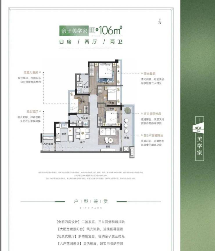 改善客:选择105㎡四房,双主卧设计,适合二胎家庭;
