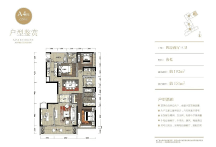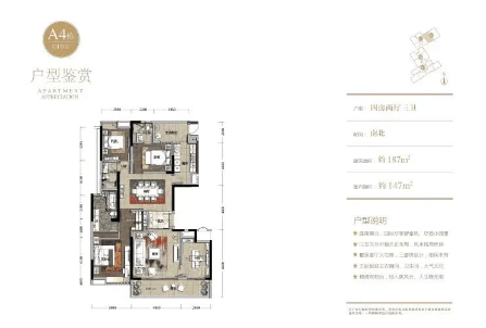 九洲海誉主推188㎡、193㎡四房及117㎡三房单位,户型设计兼顾功能性与舒适性。大四房单位三套房设计,满足多代同堂家庭需求。主卧配备衣帽间及独立卫生间,兼顾私密与低奢生活体验。东南朝向阳台贯通客厅及餐厅,实现采光、通风及景观一体化。