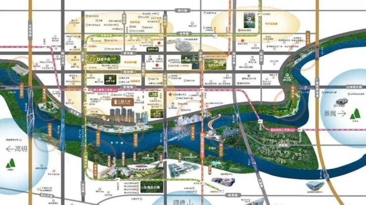 项目坐拥4⃣横4⃣纵的完善交通网络,周边4⃣条地铁线路共计7个地铁站次第环绕,轻松接驳广佛两地各大核心板块。