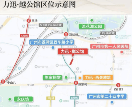 力迅樾公馆构建“轨道+路网+公交”三维立体交通体系,执掌主城出行效率,轻松畅达全城各大核心板块。道路交通层面,项目形成“四横四纵”主干路网格局,四横涵盖东风西路、中山七路、康王北路、荔湾路,四纵接驳内环路、环城高速、机场高速等城市快速路,自驾出行5分钟可达老城核心商圈,15分钟直达越秀、天河CBD,30分钟覆盖广州主城全域,高效规避拥堵,提升出行舒适度。轨道交通方面,项目500米范围内坐拥双地铁枢纽,步行约6分钟可达陈家祠站(地铁1/8号线)与彩虹桥站(地铁8/11/13/22号线),其中彩虹桥站为西部核心换乘枢纽,依托11号线环线优势,一次换乘即可通达全城;未来13号线二期开通后,可无缝直达珠江新城,通勤效率再升级。公共交通配套完善,康王北路、荔湾路等主干道布设多个公交站点,数十条公交线路覆盖全城,接驳地铁与商圈,满足多元出行需求。便捷的交通网络,既缩短了日常通勤时间,也拉近了与城市各板块的距离,让业主尽享主城繁华生活。