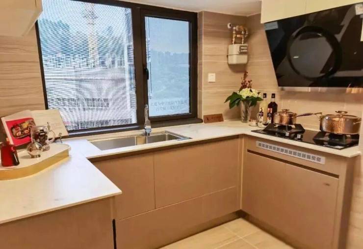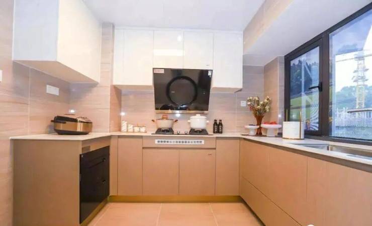 同时,该厨房还是时下最受欢迎的U型设计,切、煮、洗非常方便,还可同时站下三个人。
