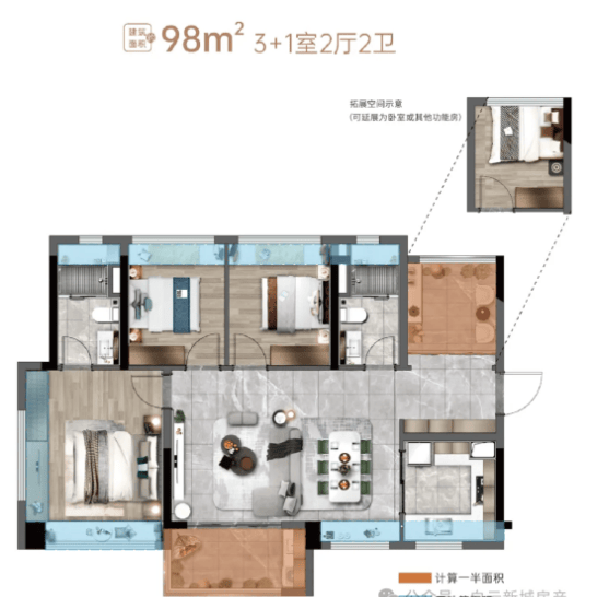 品牌方面,新城控股作为绿档房企,资金实力雄厚、造城经验丰富,旗下吾悦广场商业品牌影响力大,能够为项目的工程质量与交付提供坚实保障。配套方面,项目拥有全龄教育资源、多维交通路网、成熟生活配套及优质社区内部设施,500米步行圈满足日常需求,地铁、城轨规划进一步提升了项目的长远价值。户型方面,76-110㎡三房、四房户型适配多元刚需需求,空间利用率高、居住舒适度佳。