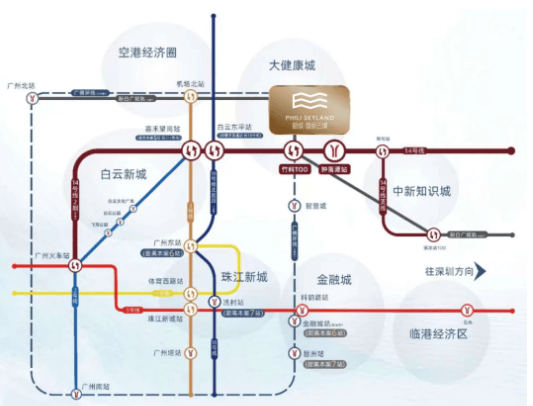 城轨规划为项目增添了长远价值。18号线北延段(在建中)在白云东平站与14号线交汇,未来从项目出发,7站即可到达冼村站,快速接入天河核心商务区。此外,在竹料站可换乘广佛环线(目前全线工程累计完成93%,预计2024年通车),3站直达天河智慧城,5站抵达琶洲,轻松享受大湾区核心商圈的资源辐射;新白广城轨(在建中)建成后,1站即可到达白云机场,南向还可通达东莞、深圳,跨城出行更加便捷。