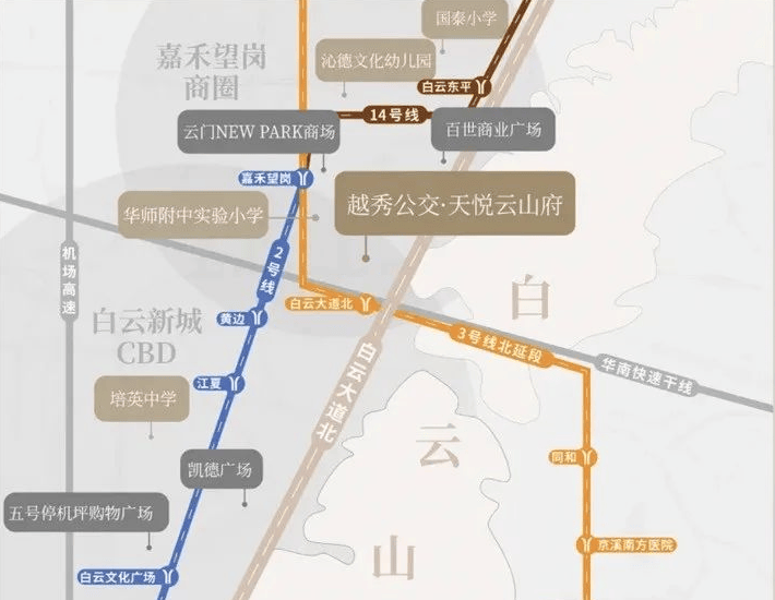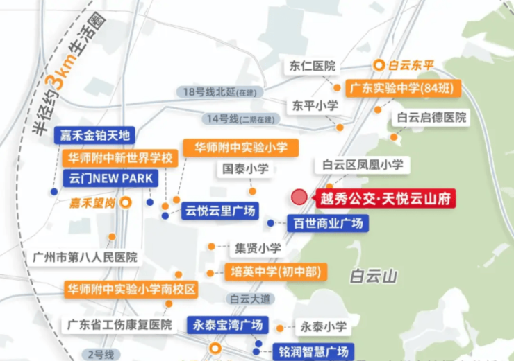 无缝接驳地铁14号线白云东平站(约1.7公里)、3号线白云大道北站(约2.1公里)及在建的18号线北延段