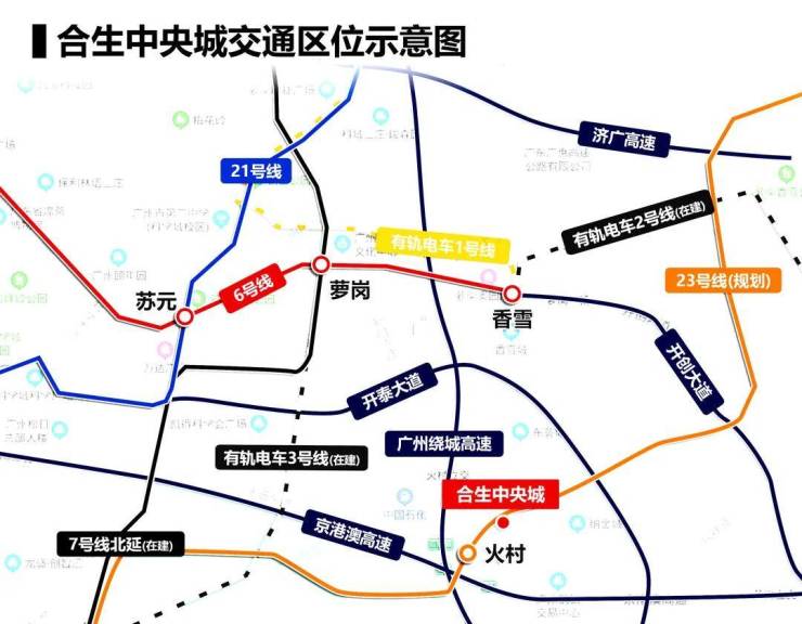 地铁出行:距离最近的地铁6号线香雪站约2.6公里,骑行电动自行车约10分钟可达,步行需30分钟左右,日常出行可通过骑行接驳地铁,便捷直达广州各地;周边规划有地铁23号线,线路全长45.1km,终点为赤沙滘-坭紫,串联海珠、天河、黄埔、增城四大区,规划站点包含火村站,距离项目较近,目前该线路仍处于规划阶段,具体建设时间及开通时间可关注官方公示,未来开通后,将大幅提升项目交通便捷度,进一步凸显区位优势。此外,周边还有7号线(二期在建中)、21号线经过,未来可通过换乘,直达天河、番禺、顺德等区域,出行更加便捷。