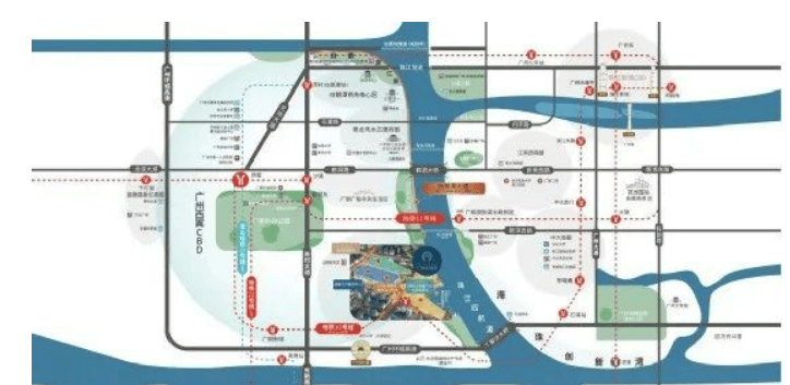 地铁: 项目目前现有地铁是1号线西塱站距离项目大约3.5公里。周边还有10、11、22号线(在建中)三地铁交汇,其中距离10号线东沙站仅约600米(预计2024年底开通)。10号线串联天河、白云、越秀、荔湾和海珠区,连接广州火车站、广州东站等大型交通枢纽,便捷出行。11号线为环线,22号线则直通南沙,未来通勤珠金琶都会非常方便。
