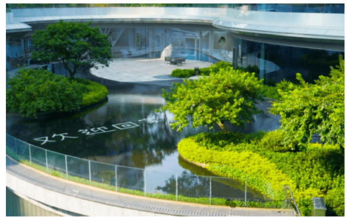 自然景观 项目处于三江环抱地,家楼下纵享无界亲江,揽广州市区唯一2.4km至美江岸线。社区举步可达江岸休闲公园、滨江文化公园、广钢中央公园,一江三园的绿养生活体验。外部得天独厚的滨江环境,更要求项目在内部园林的打造上更具用心,能与外部的自然景观相融。流水、瀑布等景观的营造,消弭了珠江与建筑的边界。让人步入小区中,也仿佛能听到珠江水的流动,瞬间忘却外部的喧嚣,投入自然的怀抱。