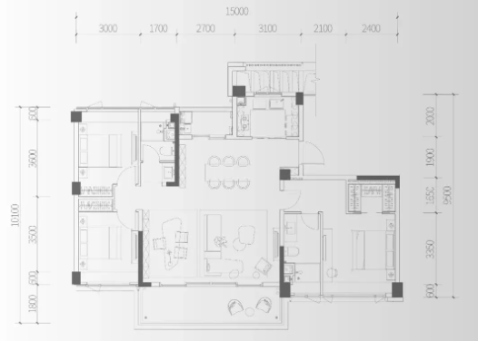 B户型建面约134㎡,三房两厅两卫设计,主打南北对流,空气流通性好。约6.8m超宽景观阳台,延伸了室内空间,也为业主提供了广阔的观景视野;主卧套房配置阳光化妆间,满足女主人的日常需求;独立长辈房设计,实现了动静分区,避免了家人之间的生活干扰,适合多代同堂家庭居住。