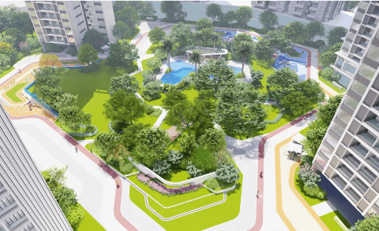 公交珠实·花城云著以打造高品质刚需社区为目标,在社区内部配套与物业服务方面精益求精,为业主提供舒适、便捷、安全的居住体验。社区采用围合式布局,核心打造近4万㎡中心园林,引入多种珍品树种,通过层次化的景观设计,营造出四季常绿、移步异景的园林环境。
