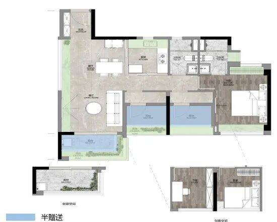 谁能想到刚需盘的户型能这么惊艳?实用率接近100%,赠送空间多到惊喜,85%的户型都是南向,阳光和清风根本挡不住!