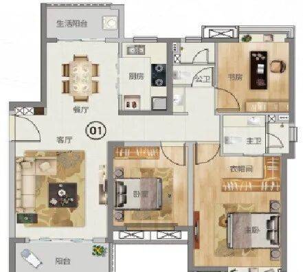 116㎡三房两厅:超大主套设计,空间极致利用。