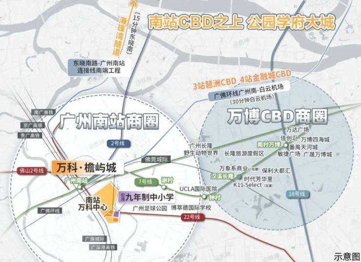万科檐屿城所处的广州南站CBD,是广州“南拓”战略中的关键承载区之一,同时也是连接珠江新城与万博板块的重要枢纽节点。该区域以交通枢纽为核心,叠加商务、商业与居住功能,形成高密度但高效率的城市发展模式。