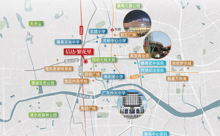 地铁 26 号线是广州第四期地铁规划中的重点线路,与 3 号线基本平行,建成后将有效分流 3 号线的通勤压力,进一步提升市桥板块的交通便捷性。而且地铁 26 号线贯通广州南北,串联起荔湾、海珠、番禺等多个区域,未来从信达繁华里出发,通勤主城的时间将进一步缩短,交通价值也将迎来大幅提升。