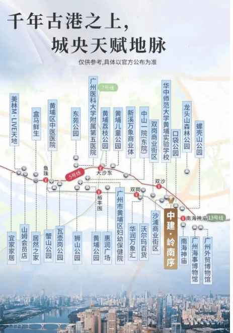 项目距 13 号线南海神庙站步行 800 米(约 8 分钟),13 号线二期即将通车,3 站直达鱼珠(换乘 5 号线),6 站至珠江新城(约 30 分钟);部分组团距 5 号线双沙站 500 米,3 站至金融城(约 12 分钟);周边广州绕城高速、广深沿江高速等主干道纵横,自驾非高峰时段 20 分钟至科学城、25 分钟至琶洲 CBD。规划中的黄埔高铁站(10 线联通大湾区)距项目 1.5 公里,未来可快速直达东莞、深圳,双地铁 + 主干道 + 城际交通构建高效出行网络,满足珠金琶上班族需求,立即拨打测算通勤路线。