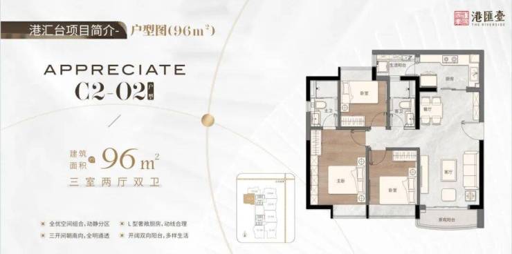 由顶尖设计团队精心打造的建面约69-144平方米臻美二至四房,户户双阳台,LDK一体设计,东南向望江赏景,科学布局动静分区,双入户大堂,配备星级五层地库,每一细节都体现了对品质生活的追求。例如: