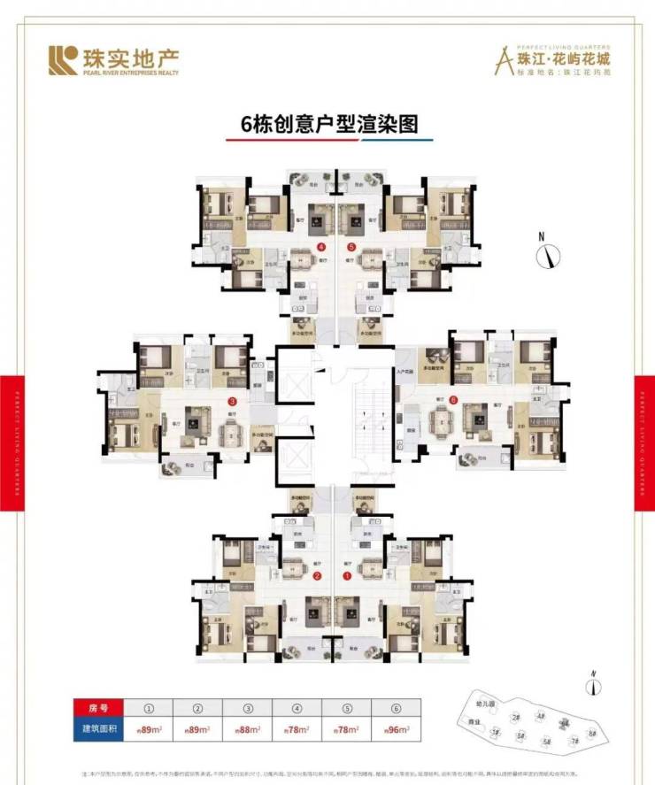 主力面积:78 ㎡/88 ㎡/89 ㎡/96 ㎡3+1 空间两卫