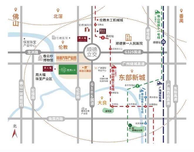 【雲璟上筑】位于佛山市顺德区,占据105国道与325国道交汇处,拥有双主轴交汇的优势。同时,项目临近佛山地铁3号线(荔村站),仅需三站即可到达北滘新城站,八站可达广州南站;此外,还有佛山地铁11号线、佛山地铁13号线以及广珠城际铁路(顺德站)等多条轨道交通线路,构成便捷的四轨道出行体系。更值得一提的是,佛山一环南延线、广州绕城高速、广珠西线高速和东新高速四条高速公路环绕四周,让业主能够轻松联动湾区城市群,享受便捷的城市生活。