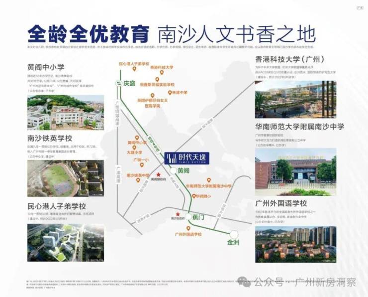 周边分布有金洲小学、南沙一中等重点中小学,教育资源丰富。距离项目不远处的庆盛板块,规划有国际教育园区,包括香港科技大学等知名院校,吸引高端人才集聚,带动区域教育品质持续提升。