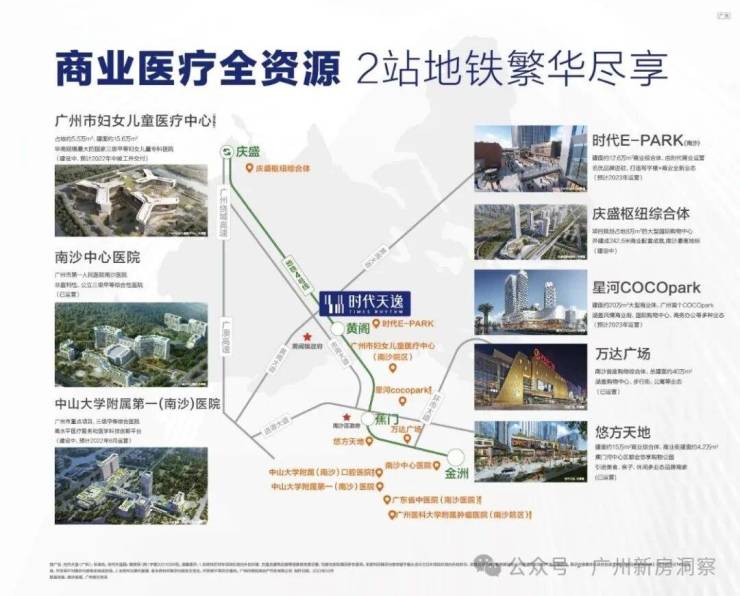 医疗方面,项目周边已有广州市妇女儿童医疗中心(南沙分院)、广州市第一人民医院(南沙分院)等机构。根据规划,片区内还将建设多所三甲医院,目标是将南沙打造为"湾区医疗新高地"。