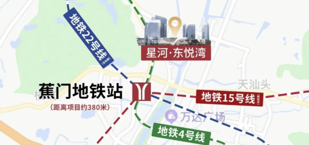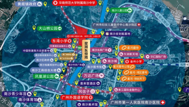 星河·东悦湾便雄踞于此,紧邻蕉门地铁站,步行仅约610米,真正实现“地铁上盖式”便捷出行。项目所在位置,是南沙目前唯一集政务、商业、教育、医疗、生态于一体的全维生活圈,堪称“南沙版珠江新城”。