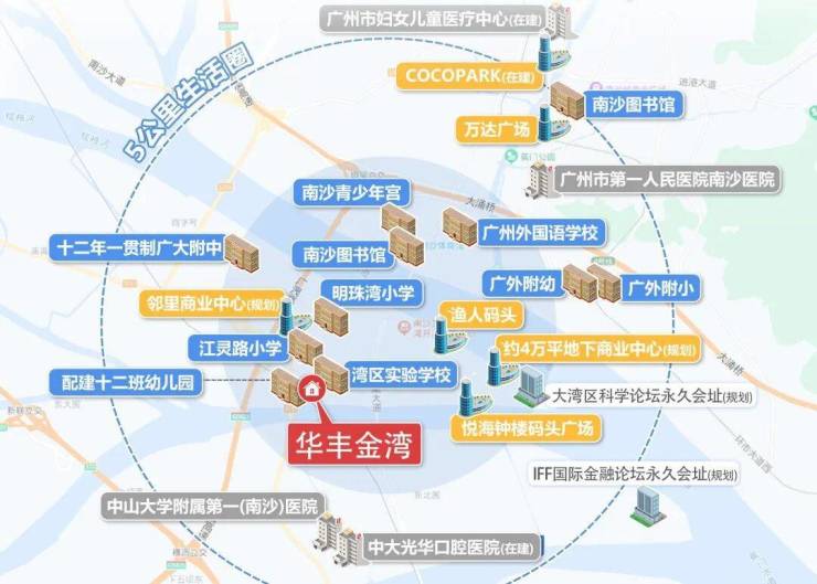 :华丰·金湾位于南沙区明珠湾灵山岛尖,是南沙金融中心的核心位置,周边汇集了大量世界500强企业和总部基地,未来发展潜力巨大。